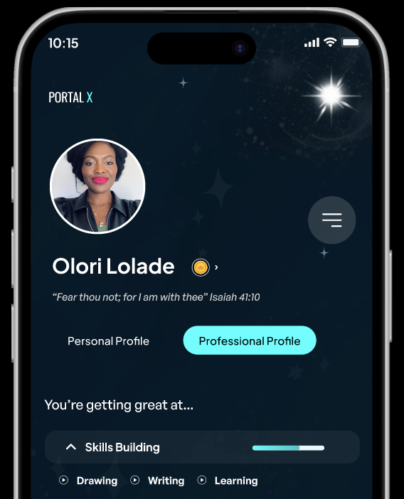 Portal X is your pocket companion — a gamified, living roadmap to your people, your prosperity, and your purpose.
